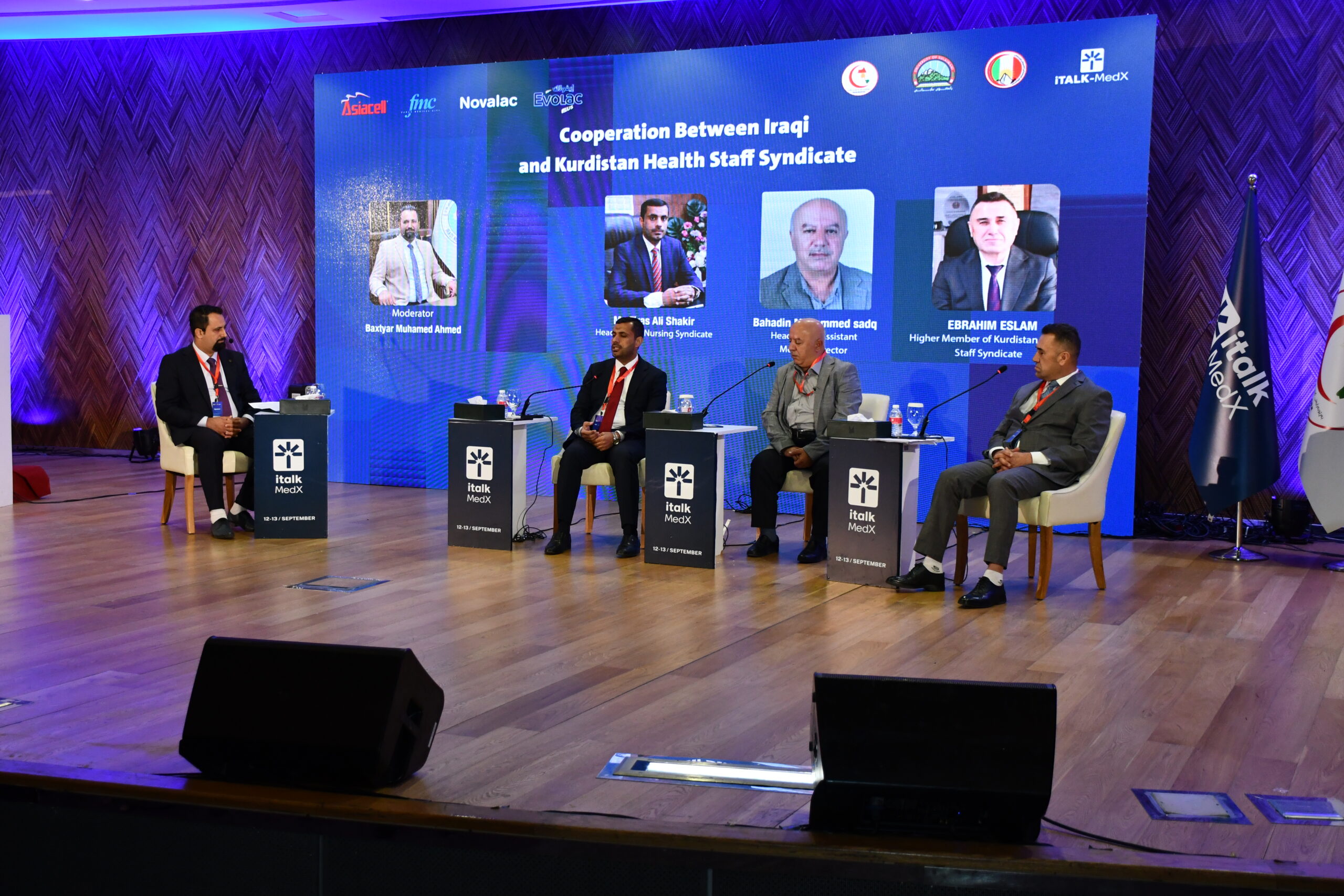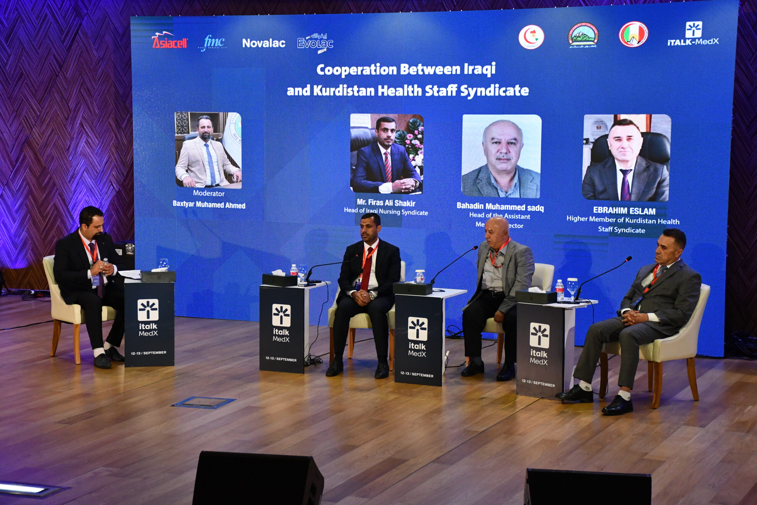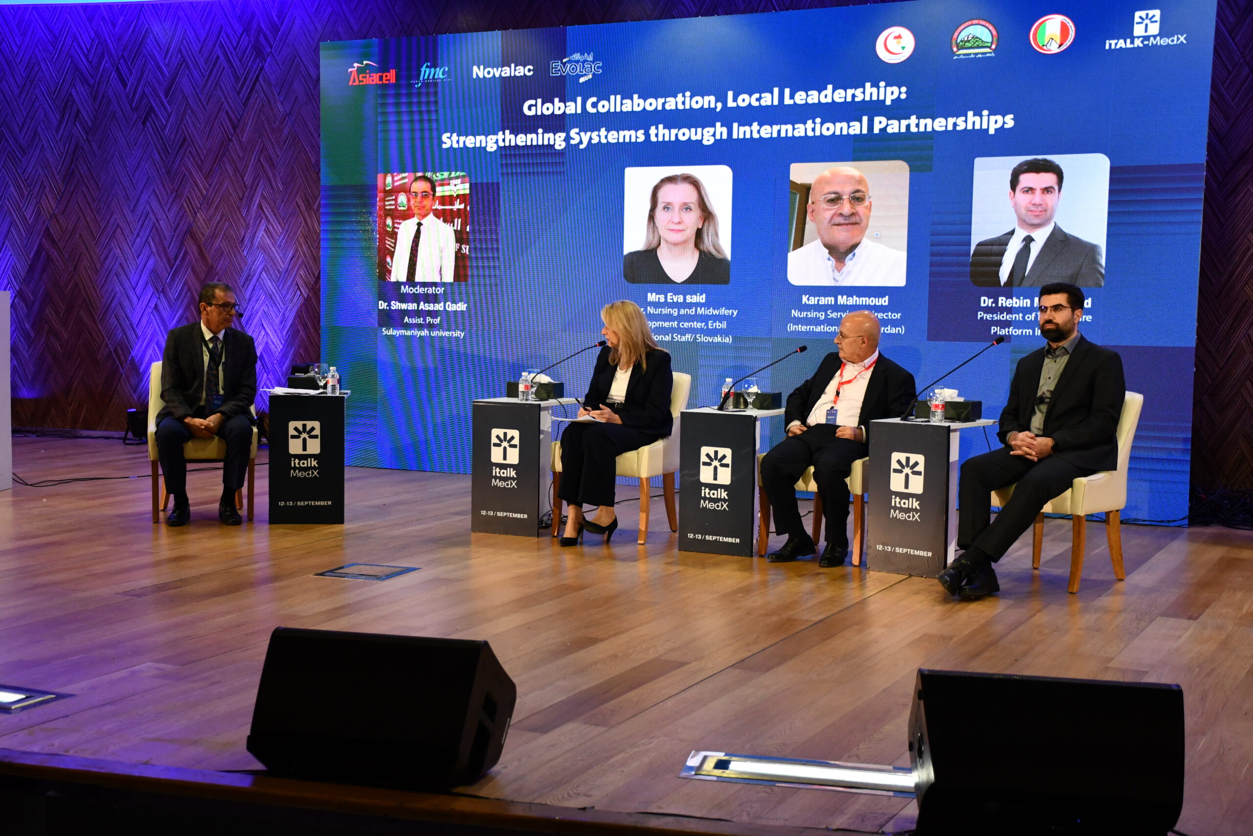 As part of the activities of the second day of the International Meeting of Nurses and Healthcare Workers, on September 13, 2025, at the Grand Millennium Hotel in Sulaymaniyah, a wide range of professional sessions were held. These included workshops, four panels, and three seminars covering various topics in nursing, midwifery, healthcare professions, management, scientific skills, university and institute studies, nutrition, infection control, and several other professional and scientific fields.